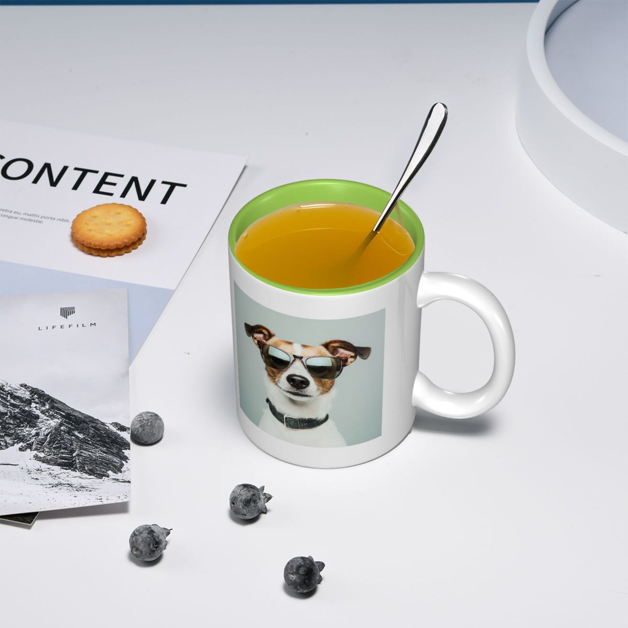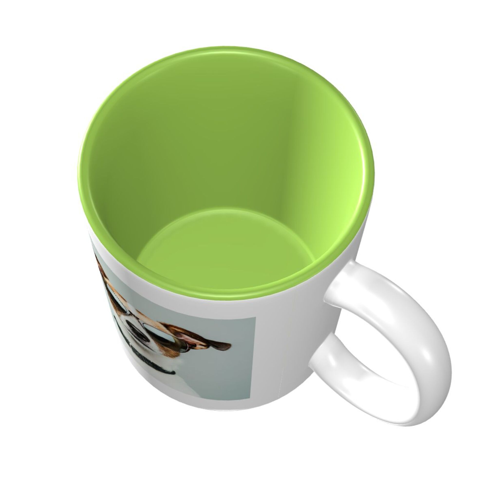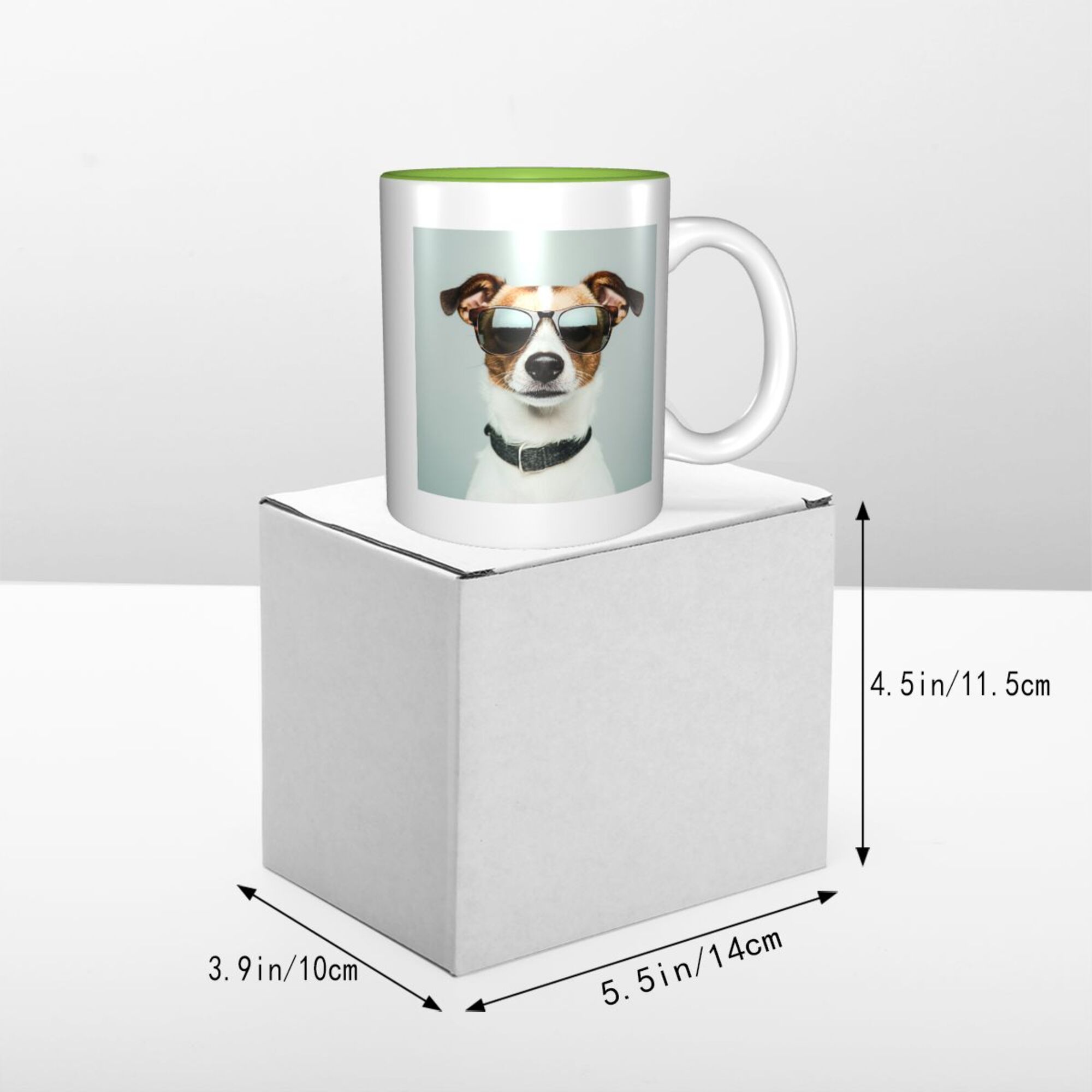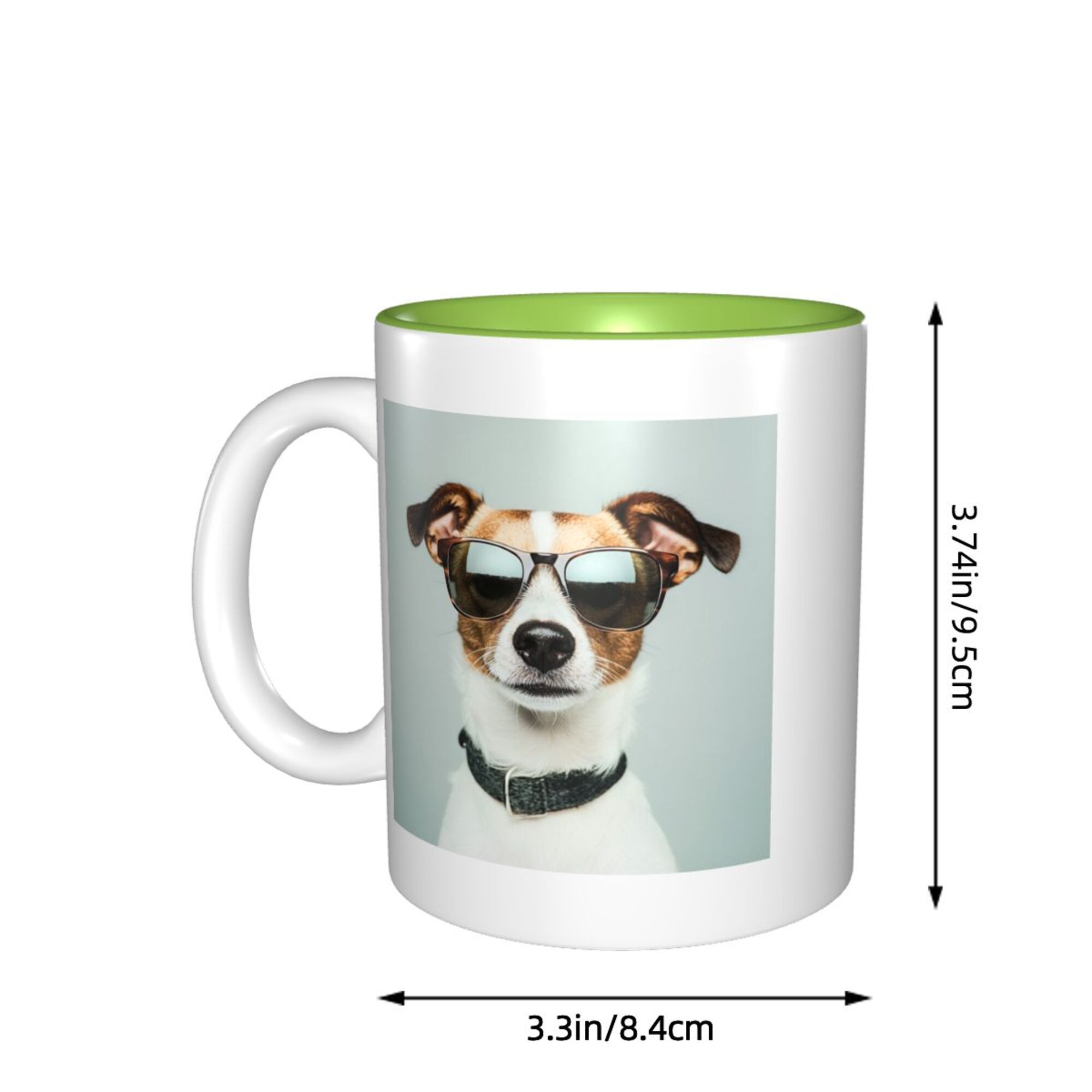 This ceramic mug is a fun and stylish choice, featuring a cool dog wearing sunglasses on the front, perfectly showcasing personality and humor. The mug is crafted from double-layered ceramic, with a vibrant exterior and a bright green interior, creating a unique visual contrast that makes it a standout piece for your home or office. With an 11 oz (approximately 325 ml) capacity, it's perfect for holding coffee, tea, or other beverages. The high-quality ceramic material ensures excellent heat retention and is easy to clean, being both dishwasher safe and suitable for hand washing. Whether for personal use or as a gift for a friend, this playful ceramic mug will bring a touch of fun to everyday life.