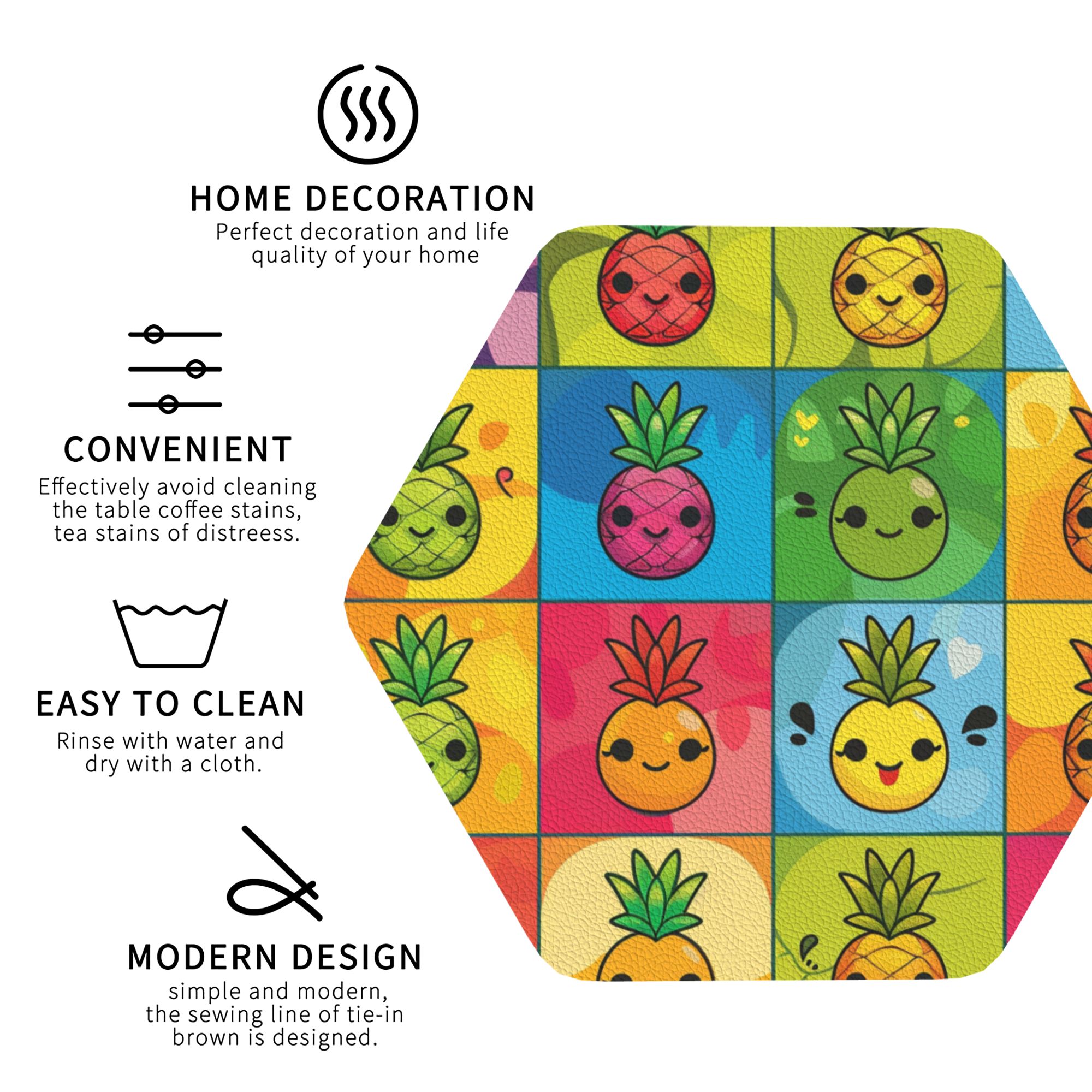 This cute colorful pineapple pattern hexagonal ceramic coaster is not just a practical everyday item but also a decorative piece filled with energy and fun, adding joy and color to your living space.