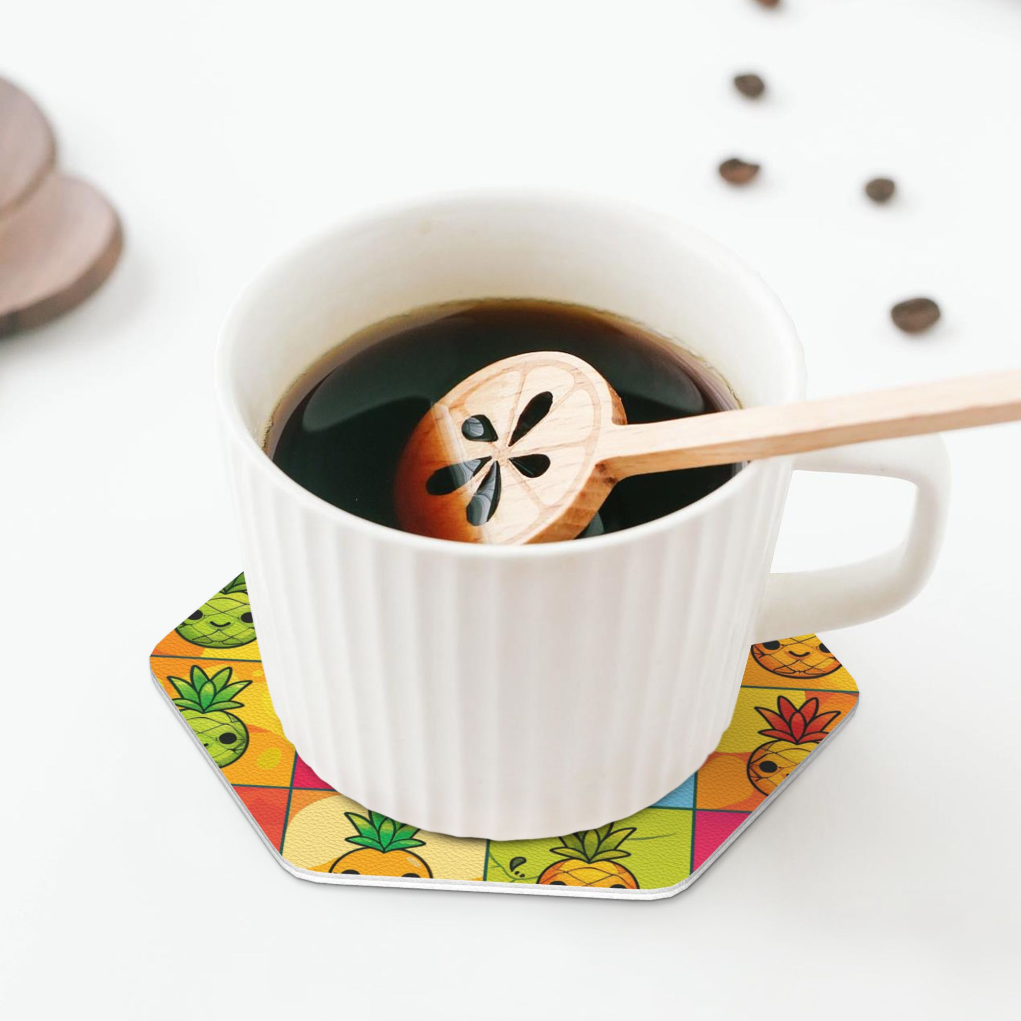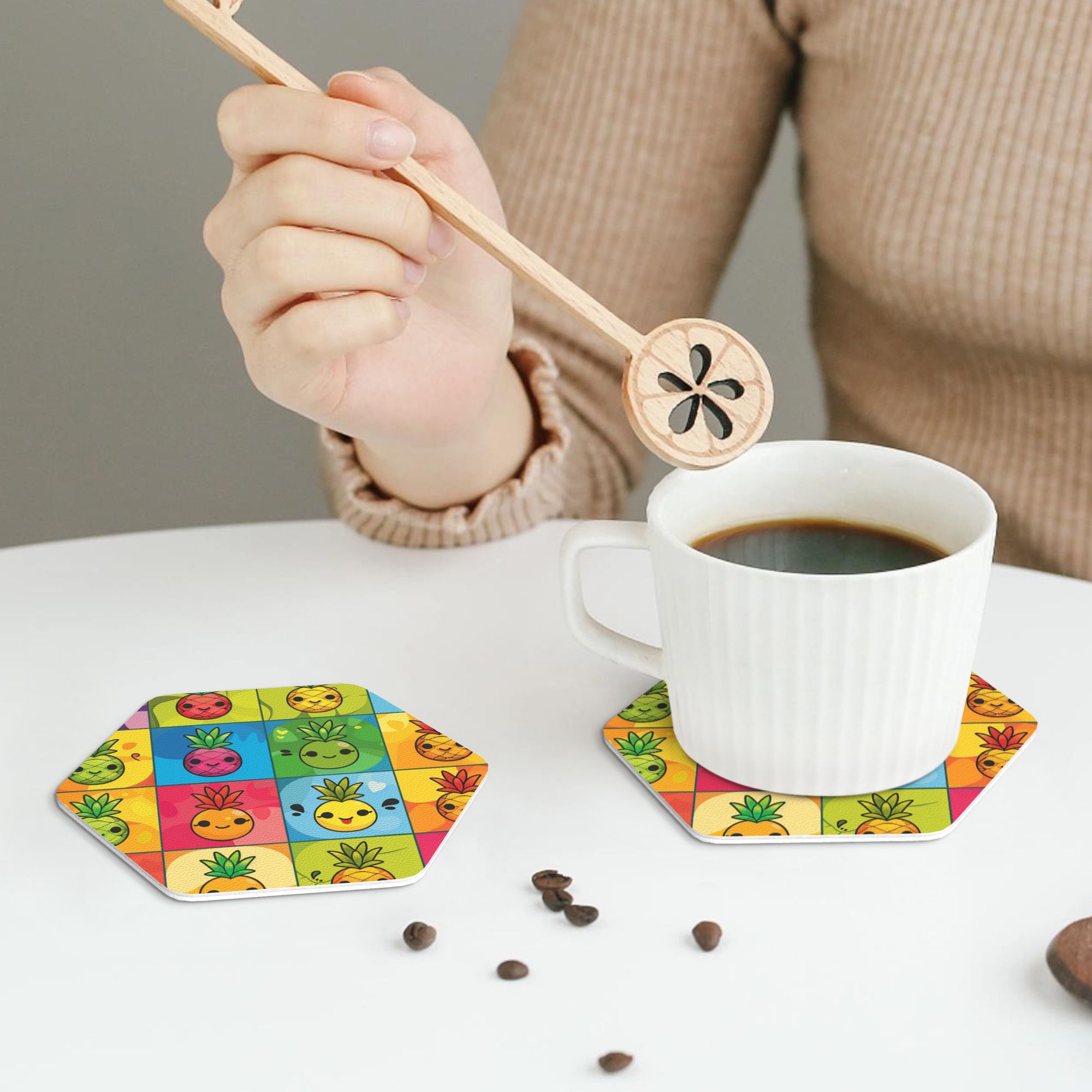 Cute Colorful Pineapple Pattern Hexagonal Ceramic Coaster