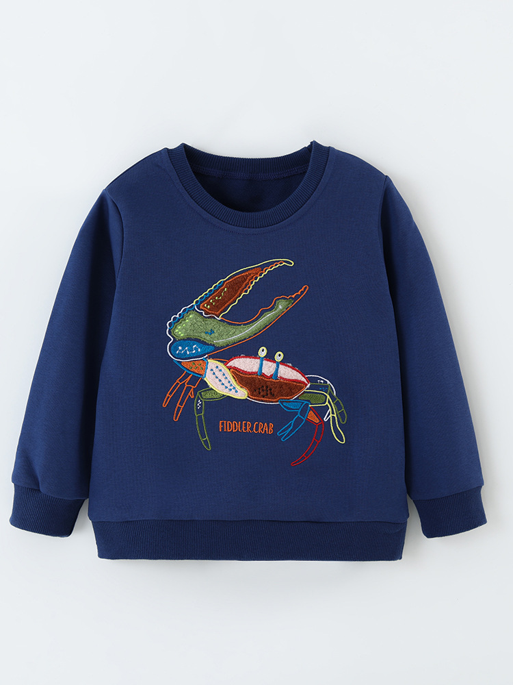 Kids Crab Embroidered Sweatshirt | Toddler Crewneck Pullover | Colorful Cartoon Design | Soft Cotton Blend | Casual Top | Sizes 80–120