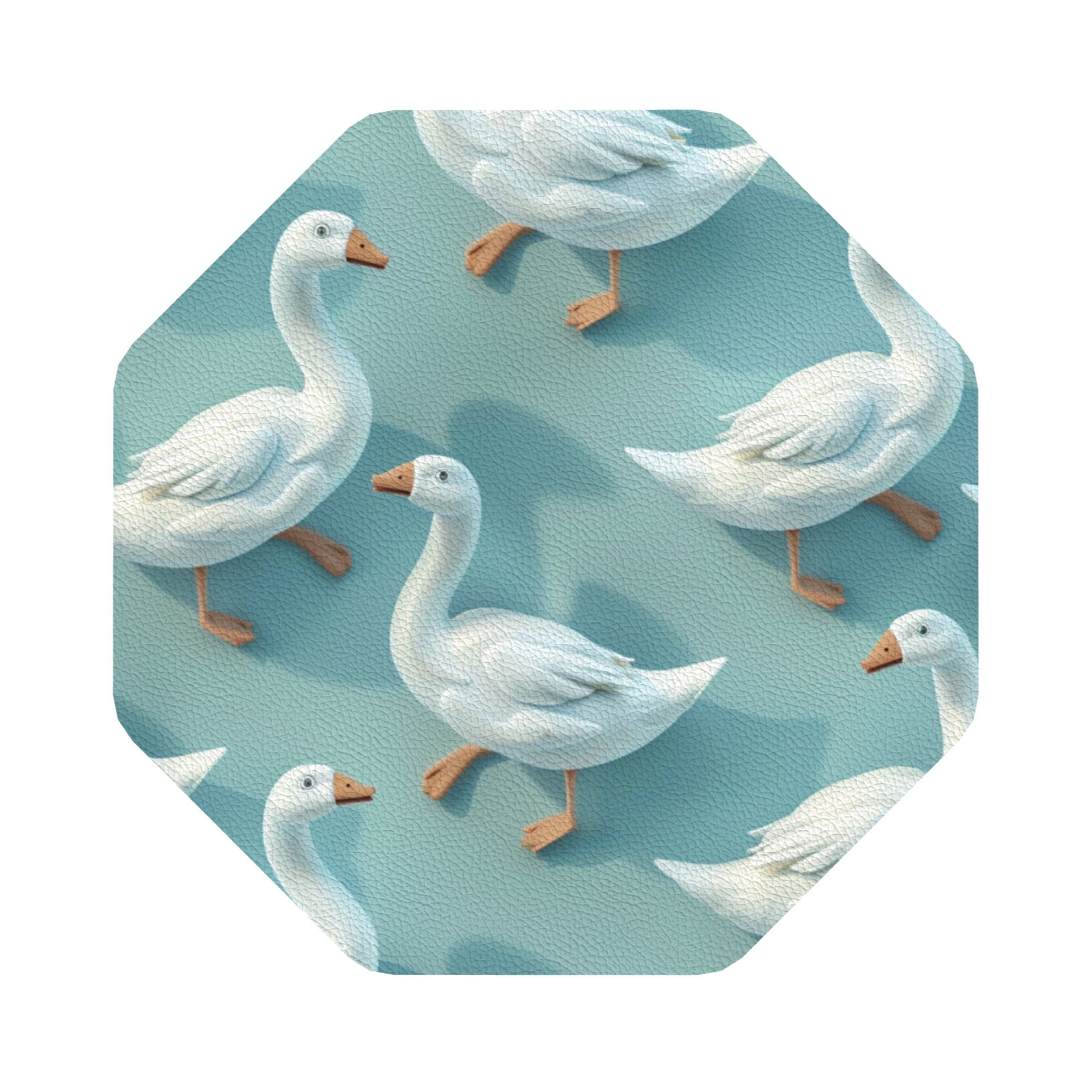 This octagonal ceramic coaster features a charming white goose pattern, with a flock of white geese standing out against a soft blue background, evoking a sense of tranquility and peace. Each goose is depicted in a lively and detailed manner, creating a relaxed atmosphere that is perfect for enhancing your dining table or workspace. This coaster is not only practical but also adds a unique decorative touch to your surroundings.