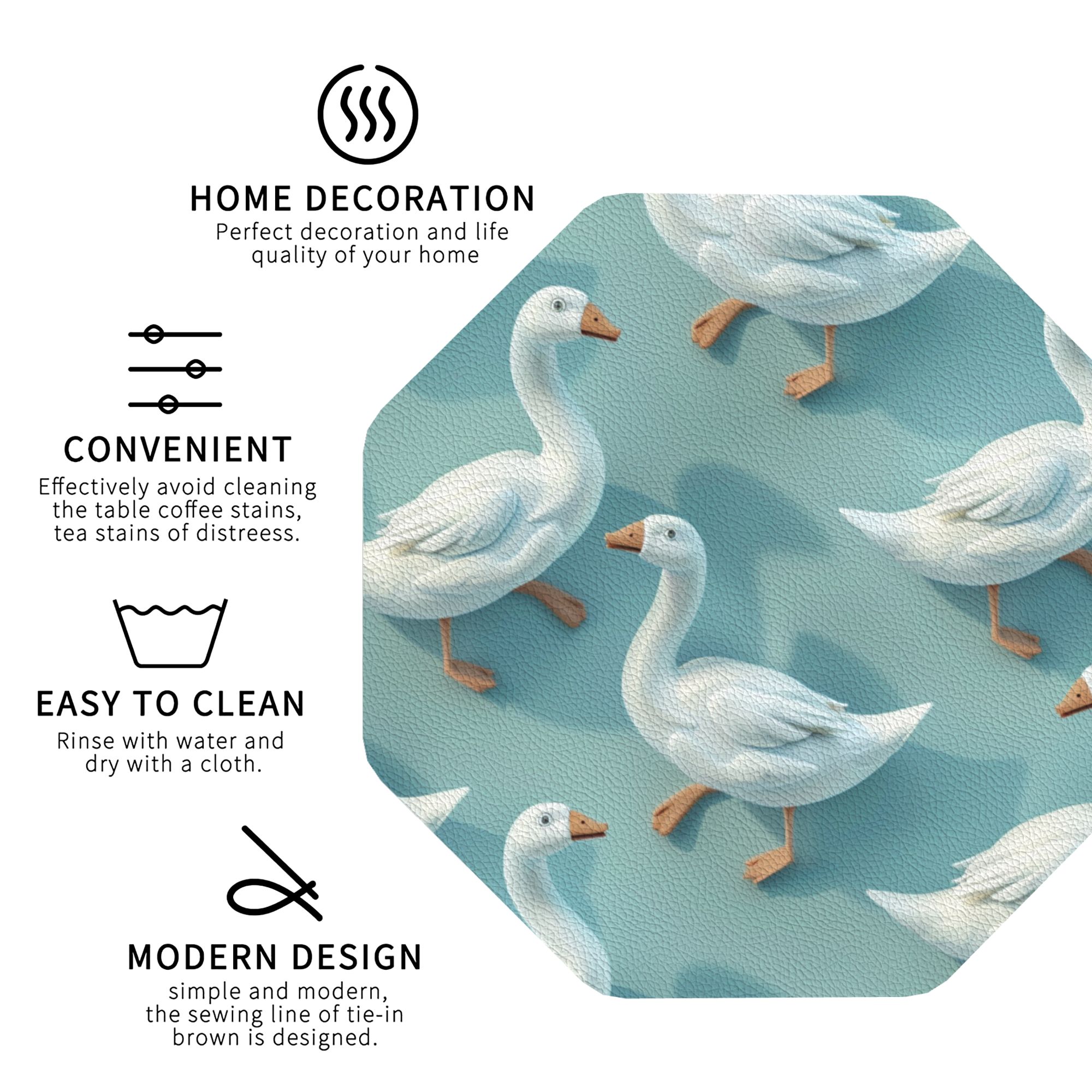 This white goose pattern octagonal ceramic coaster is not just a practical everyday item but also a decorative piece filled with natural charm and artistic beauty, adding a sense of tranquility and joy to your living space.
