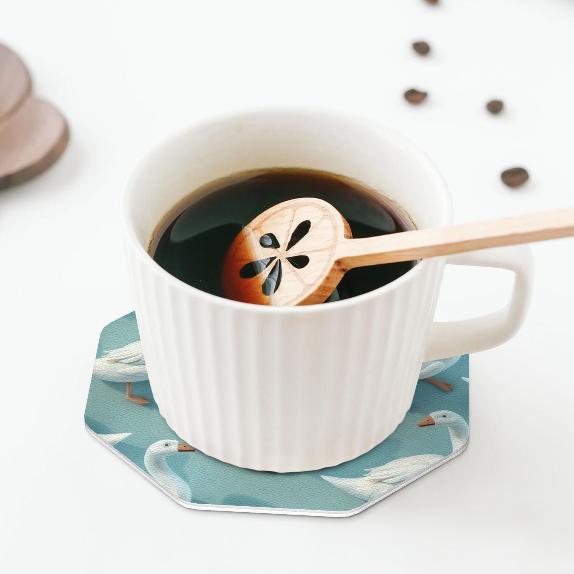 White Goose Pattern Octagonal Ceramic Coaster