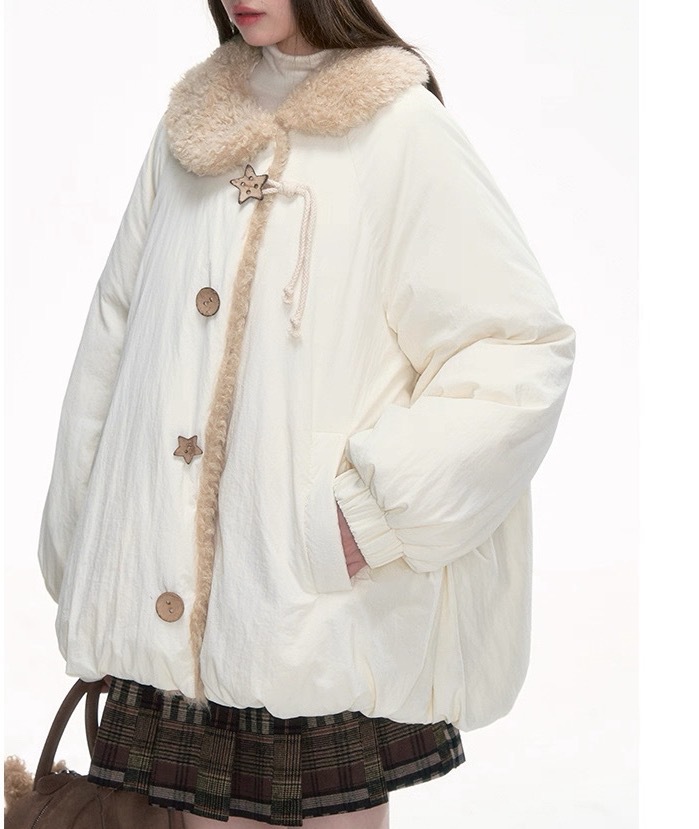 This women’s padded winter jacket features a soft and cozy design that balances warmth with a sweet, elegant aesthetic. Designed with a loose silhouette, it offers a comfortable fit without feeling bulky, making it suitable for various body types and everyday wear.